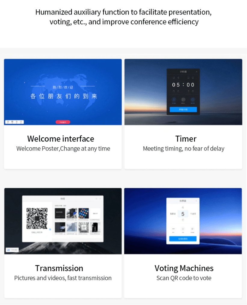 Astouch Conference Flat Panel عملکردهای هشت دستگاه را در یک دستگاه ادغام می کند: پروژکتور، پرده، تخته سفید الکترونیکی، تلویزیون، رایانه، تبلت، ست تاپ باکس و صدا. این راه حل فناوری تعاملی را با سهولت استفاده بسیار ترکیب می کند.